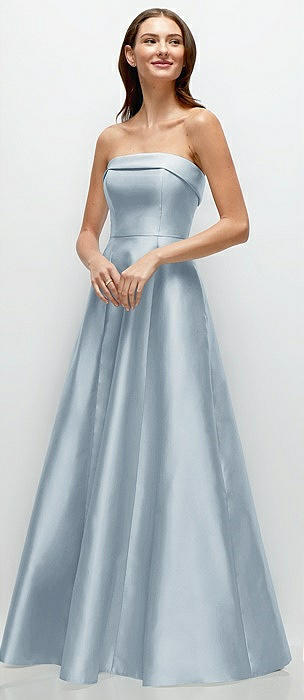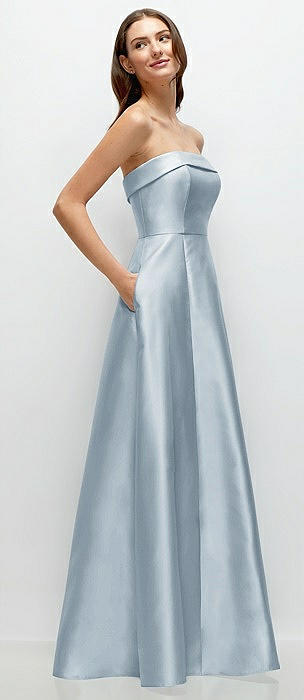 Strapless Bias Cuff Bodice Satin Gown with Pockets in mist