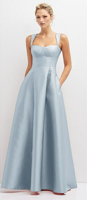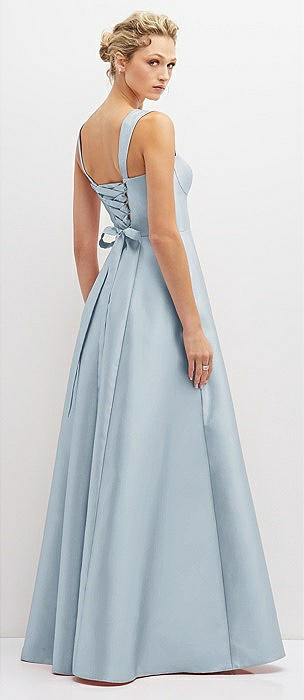 Lace-Up Back Bustier Satin Dress with Full Skirt and Pockets in mist