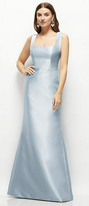Sleeveless Satin Trumpet Gown with Bow at Open-Back in mist