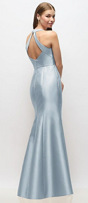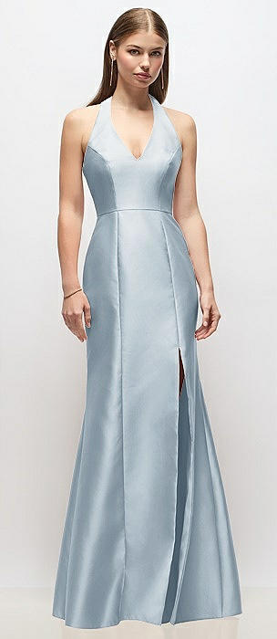 V-Neck Halter Satin Trumpet Gown in mist