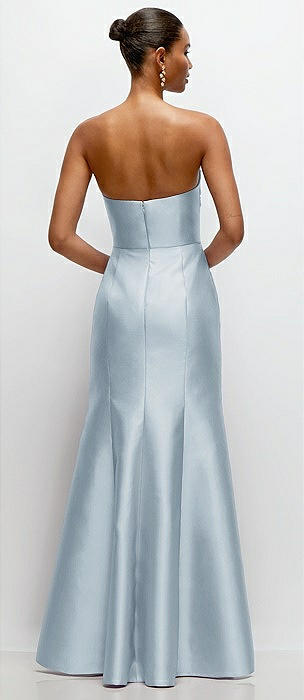 Strapless Cat-Eye Draped Bodice Satin Tumpet Dress in mist