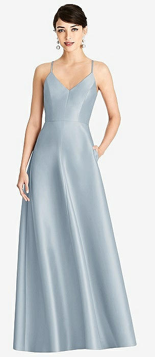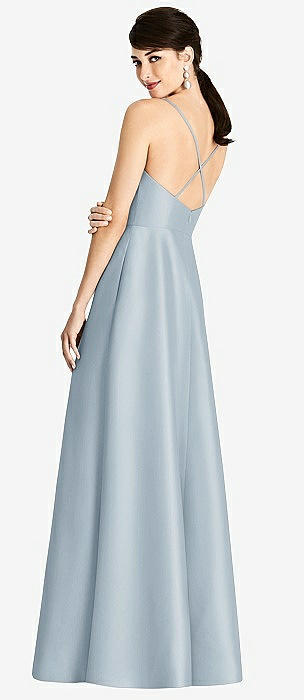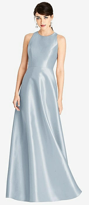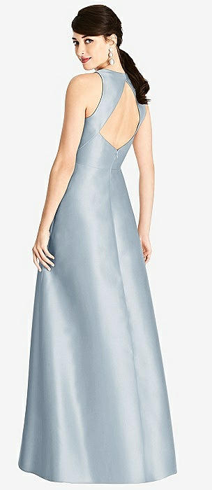 Open Neckline Cutout Satin Twill A-Line Gown with Pockets in mist