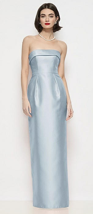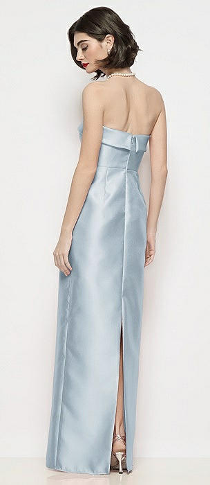 Strapless Cuff Neck Satin Maxi Dress with Column Skirt in mist