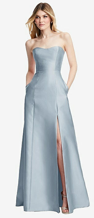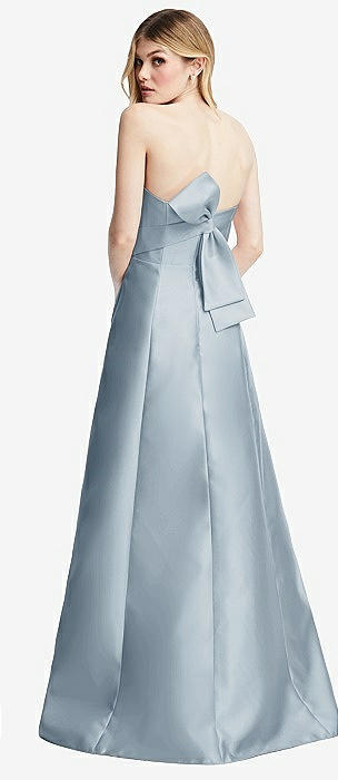 Strapless A-line Satin Gown with Modern Bow Detail in mist