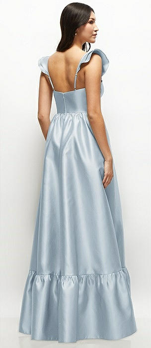 Satin Corset Maxi Dress with Ruffle Straps & Skirt in mist