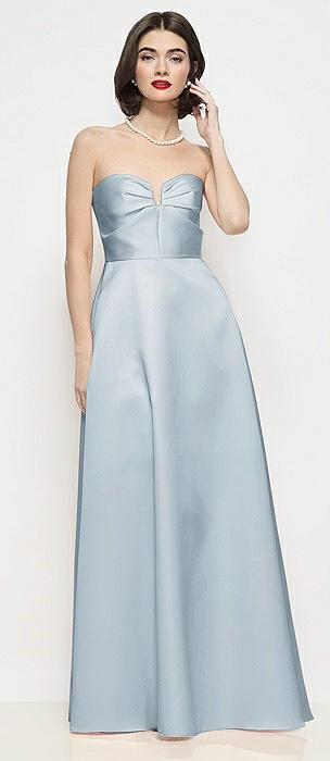 Strapless Pleated U-Wire Satin Column Maxi Dress in mist