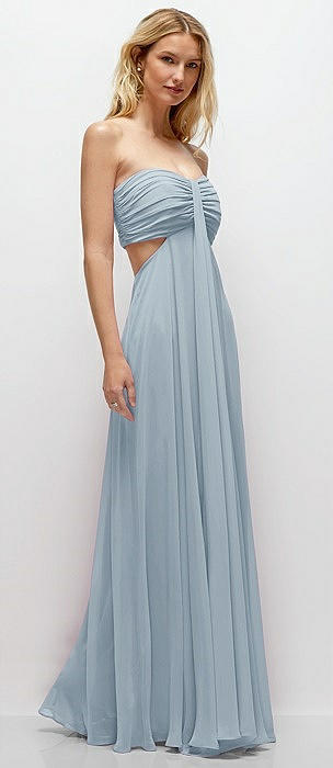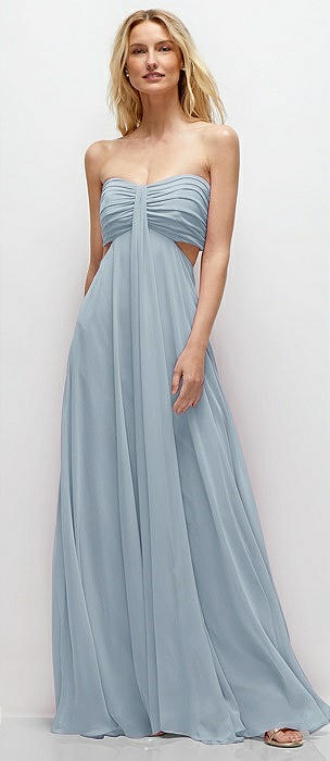 Strapless Empire Waist Cutout Maxi Dress with Covered Button Detail