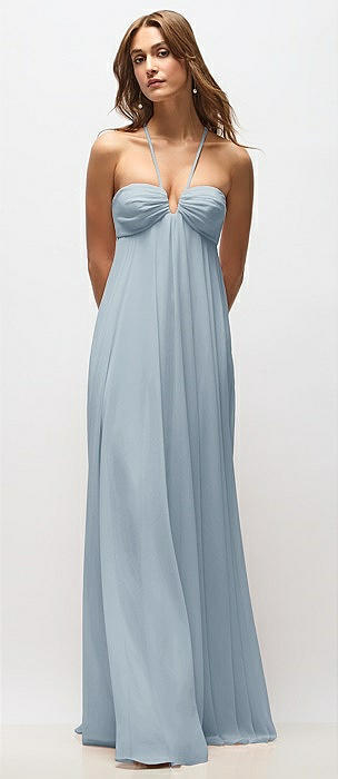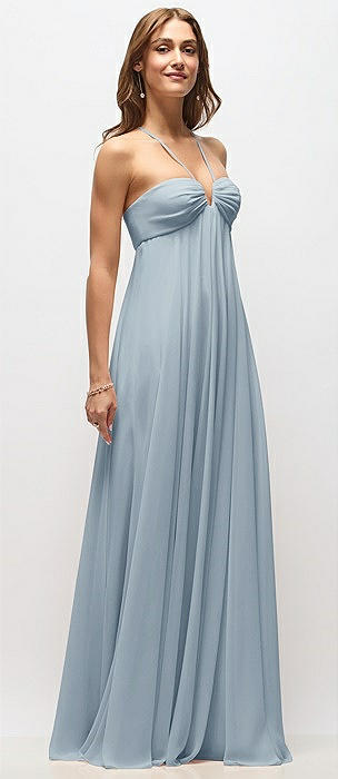 Empire Waist Chiffon Halter Maxi Dress with Convertible Spaghetti Straps