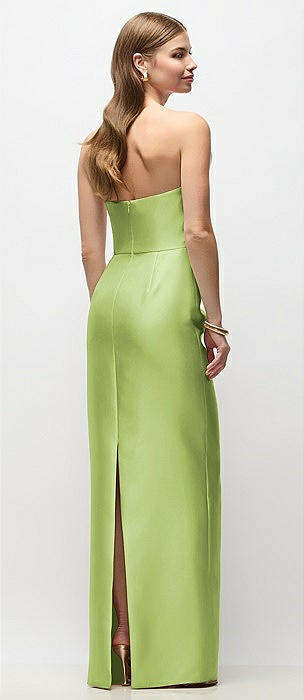 Strapless Satin Column Dress with Removeable Watteau Train in mojito