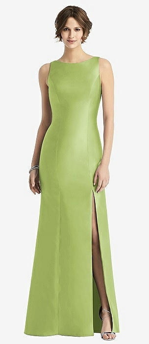Jewel Neck Bowed Open-Back Trumpet Dress with Front Slit in mojito