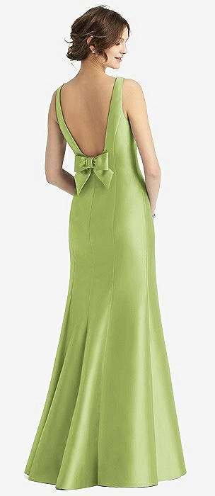 Sleeveless Satin Trumpet Gown with Bow at Open-Back in mojito