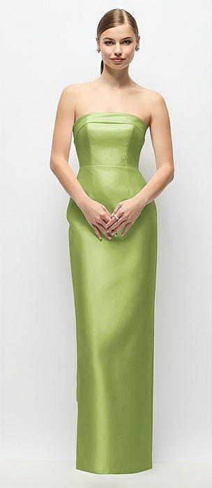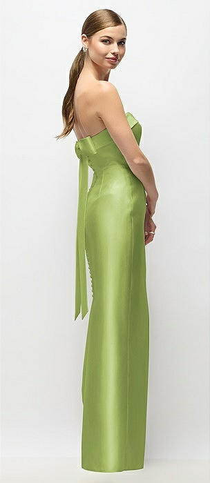 Strapless Cuff Satin Maxi Dress with Column Skirt & Back Bow in mojito
