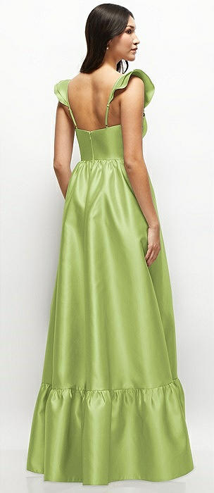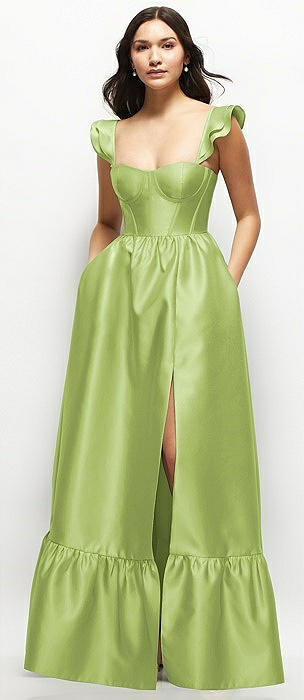 Satin Corset Maxi Dress with Ruffle Straps & Skirt in mojito