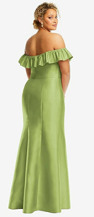 Off-the-Shoulder Ruffle Neck Satin Trumpet Gown in mojito
