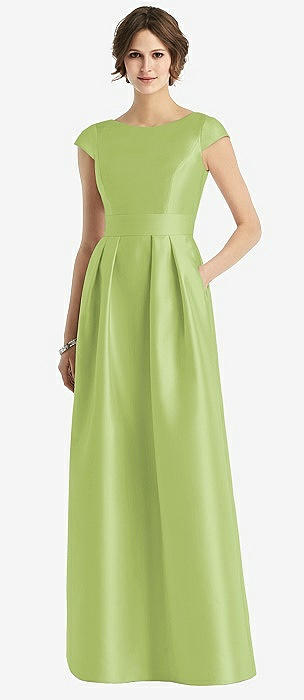Cap Sleeve Pleated Cocktail Dress with Pockets in mojito