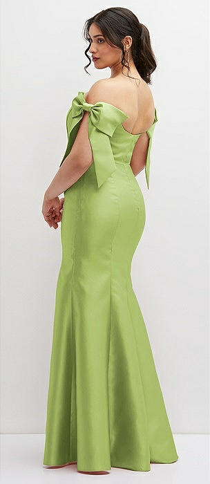 Off-the-Shoulder Bow-Back Satin Trumpet Gown in mojito
