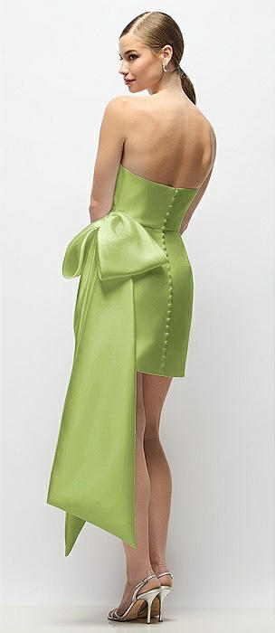 Strapless Satin Column Mini Dress with Oversized Bow in mojito