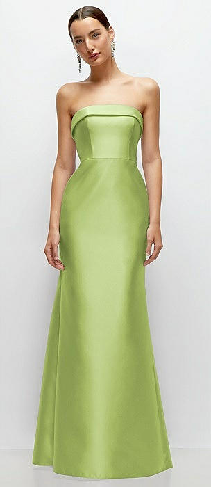 Strapless Cuff Neckline Satin Trumpet Gown in mojito