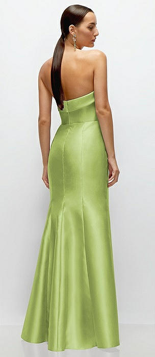 Strapless Satin Column Dress with Back Slit in mojito