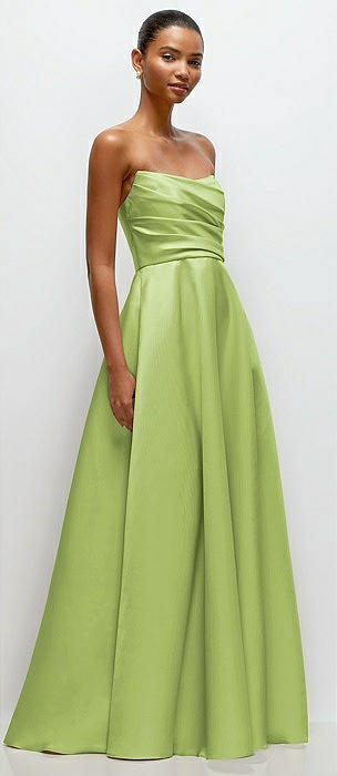 Strapless Draped Cat-Eye Satin Maxi Dress with Full Skirt in mojito