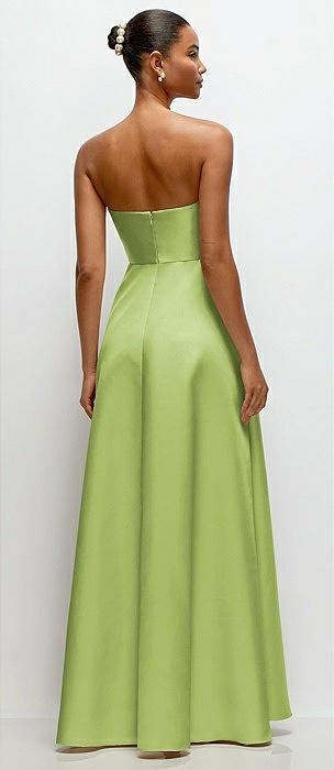 Strapless Bias Cuff Bodice Satin Gown with Pockets in mojito