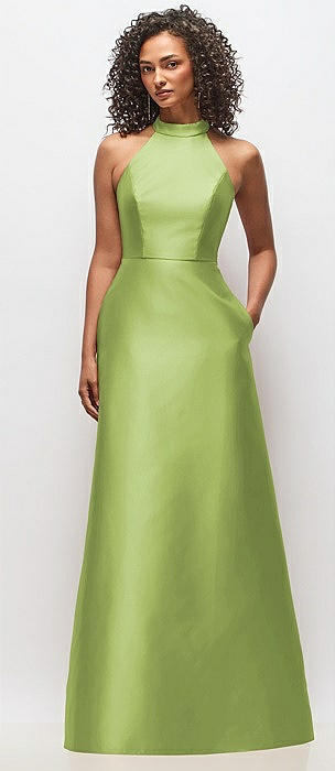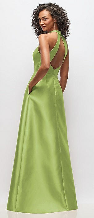 High-Neck Cutout Satin Dress with Pockets in mojito