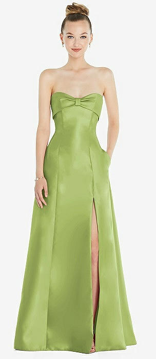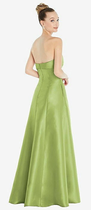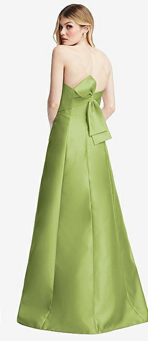 Strapless A-line Satin Gown with Modern Bow Detail in mojito