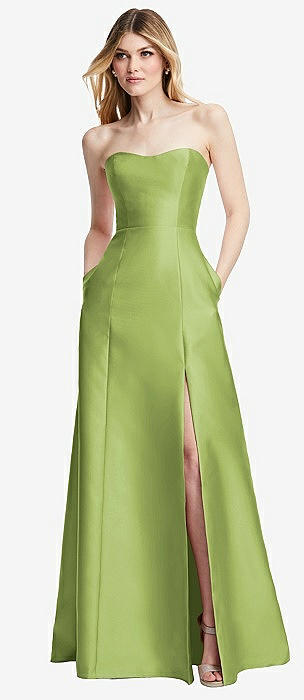 Strapless Satin High Low Dress with Pockets in mojito
