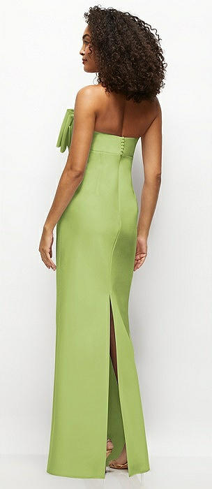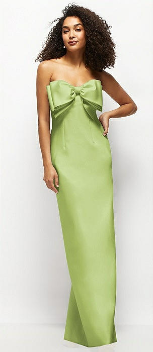 Strapless Satin Column Maxi Dress with Oversized Handcrafted Bow in mojito