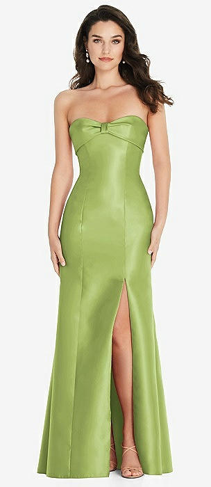 Strapless Draped Bodice Column Dress with Oversized Bow in mojito