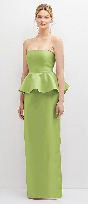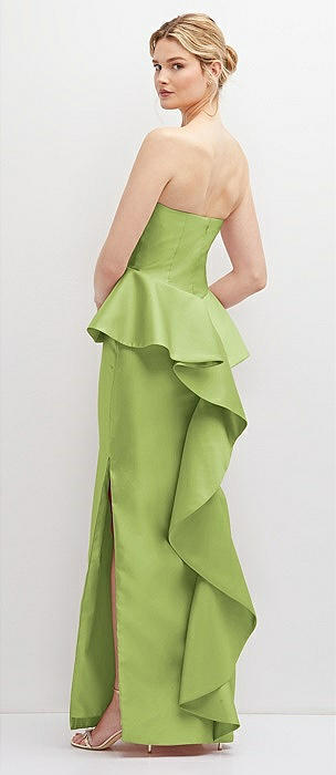 Strapless Satin Maxi Dress with Cascade Ruffle Peplum Detail in mojito