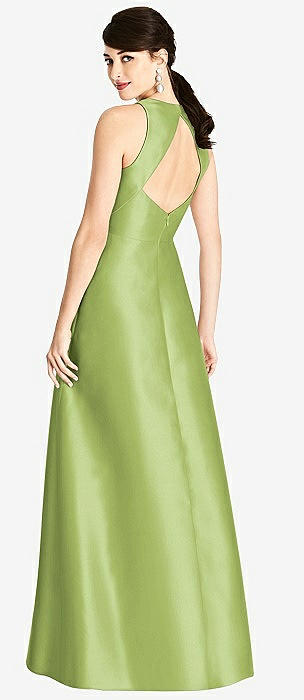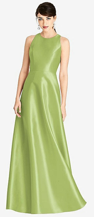 Sleeveless Open-Back Satin A-Line Dress in mojito