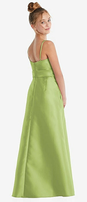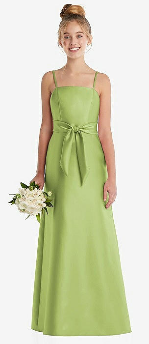 Spaghetti Strap Satin Junior Bridesmaid Dress with Mini Sash