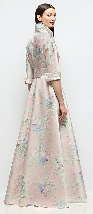 3/4 Sleeve Esme Floral Satin Shirt Dress Gown with Sash & Jeweled Buttons in esme floral
