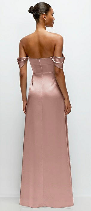 Off-the-Shoulder Bow Satin Corset Dress with Fit and Flare Skirt in neu nude