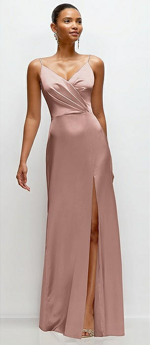 Pleated Faux Wrap Satin Maxi Dress with Adjustable Spaghetti Straps in neu nude