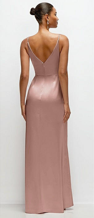 Cowl Neck Satin Maxi Dress with Adjustable Spaghetti Straps in neu nude