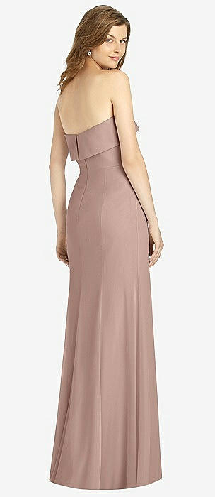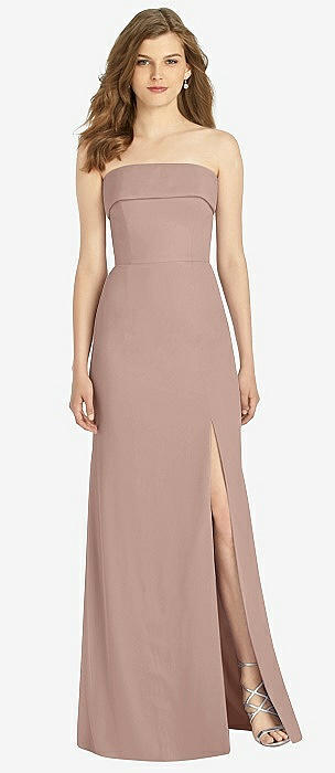 Strapless Satin Gown with Draped Front Slit and Pockets in neu nude