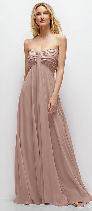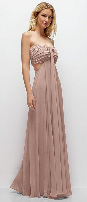 Strapless Empire Waist Cutout Maxi Dress with Covered Button Detail in neu nude