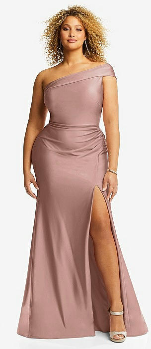 One-Shoulder Bias-Cuff Stretch Satin Mermaid Dress with Slight Train in neu nude