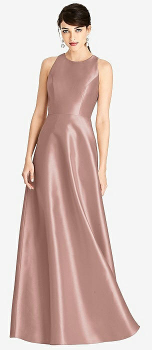 Sleeveless A-Line Satin Dress with Pockets in neu nude