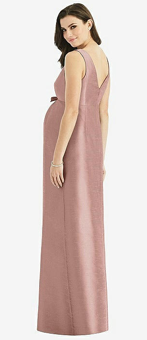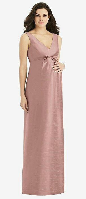 V-Neck Full Skirt Satin Maxi Dress in neu nude