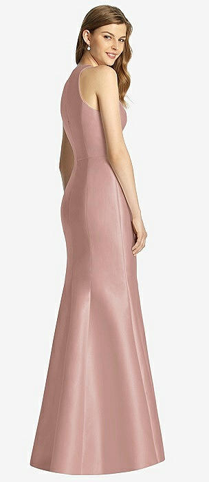 Sleeveless Satin Trumpet Gown with Bow at Open-Back in neu nude