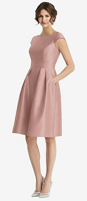 Cap Sleeve Pleated Cocktail Dress with Pockets in neu nude
