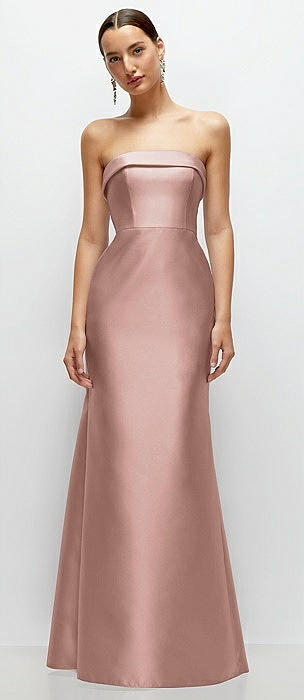 Strapless Cuff Neckline Satin Trumpet Gown in neu nude
