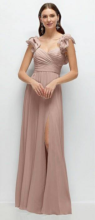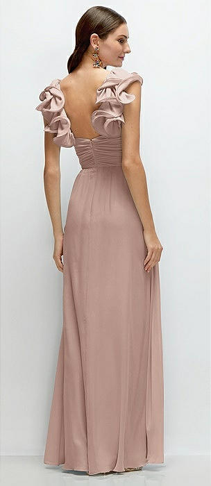 Dramatic Ruffle Edge Strap Chiffon Maxi Dress in neu nude