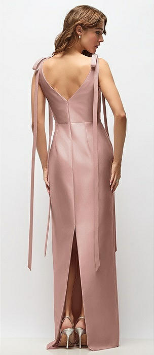 Bateau Neck Satin Column Maxi Dress with Exaggerated Tail Bow Straps in neu nude