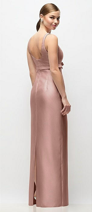 Scoop Neck Satin Column Maxi Dress with Bow at Empire Waist in neu nude