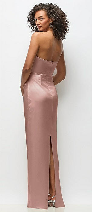 Strapless Draped Bodice Stretch Satin Column Maxi Dress in neu nude