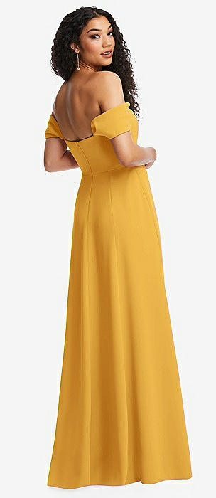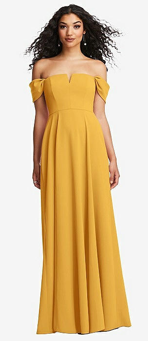 Off-the-Shoulder Pleated Cap Sleeve A-line Maxi Dress in NYC yellow
